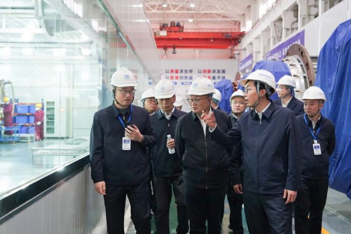 調(diào)研期間,祁騰武一行先后赴東方電機重跨車間、金模沖剪分廠,東方汽輪機工業(yè)透平總裝車間、葉片數(shù)字化黑燈生產(chǎn)線,東方鍋爐氫能示范園、容器一分廠等廠區(qū),實地了解其生產(chǎn)工藝、核心技術(shù)落地應(yīng)用等情況。