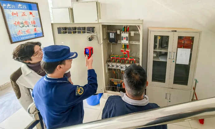 檢查現(xiàn)場(chǎng):配電箱電氣線路溫度測(cè)試。