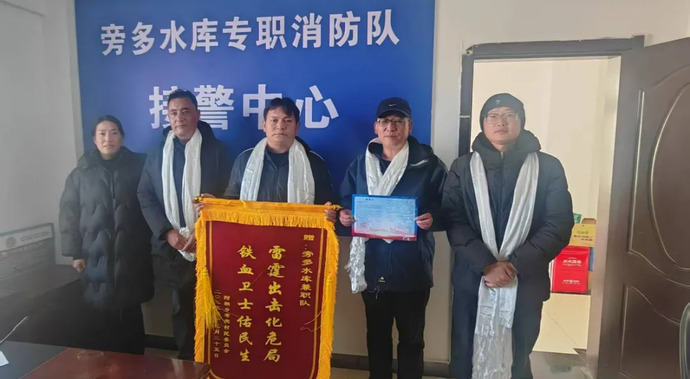 近日,西藏開(kāi)投旁多水電公司兼職消防隊(duì)獲林周縣阿朗鄉(xiāng)黨委、政府授予的錦旗與感謝信,表彰其在一起危化品運(yùn)輸車輛側(cè)翻事故救援中的突出貢獻(xiàn)。