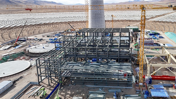 安多土碩光熱項(xiàng)目發(fā)電廠房建設(shè)現(xiàn)場(chǎng)。