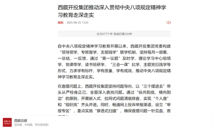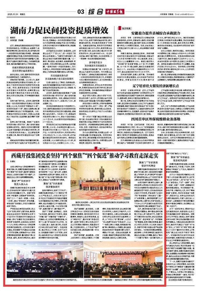 媒體報(bào)道丨《西藏開投集團(tuán)黨委堅(jiān)持“四個(gè)聚焦”“四個(gè)促進(jìn)”推動(dòng)學(xué)習(xí)教育走深走實(shí)》