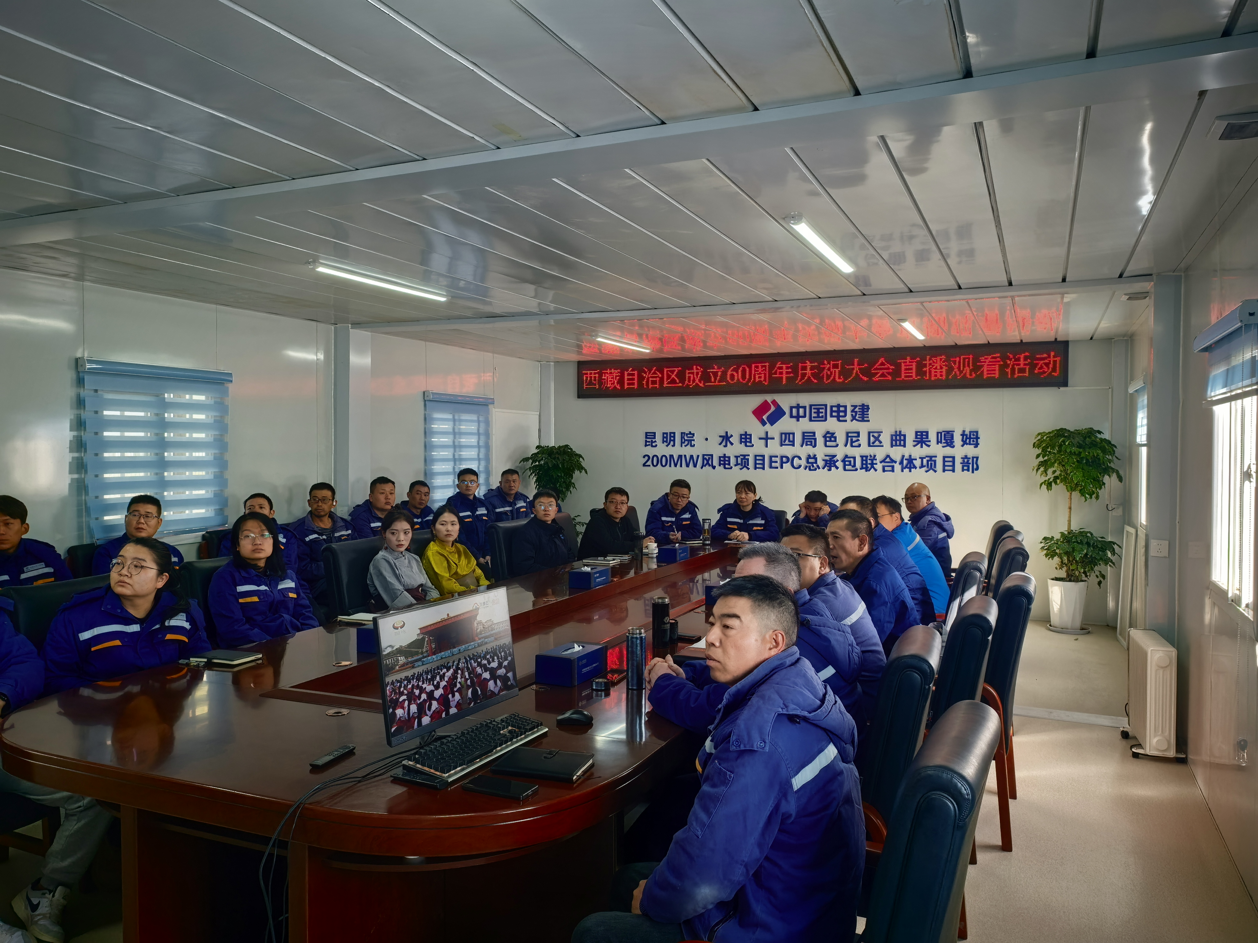 西藏開投色尼區(qū)曲果嘎姆200MW風電項目組織觀看西藏自治區(qū)成立60周年慶?;顒娱_幕盛況